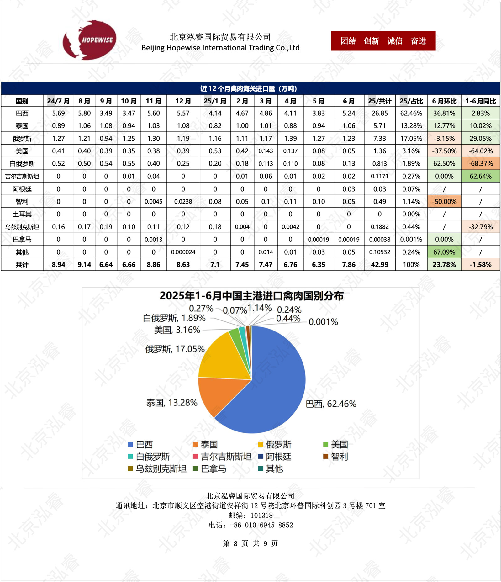 2025年1-6月冷凍豬牛禽肉海關(guān)進(jìn)口數(shù)據(jù)