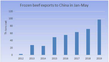 五月牛肉出口量達(dá)到12.1萬(wàn)噸