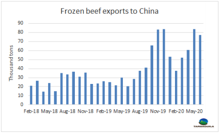 六月巴西對(duì)中國主港和香港出口量占冷凍牛肉出口總量的68%