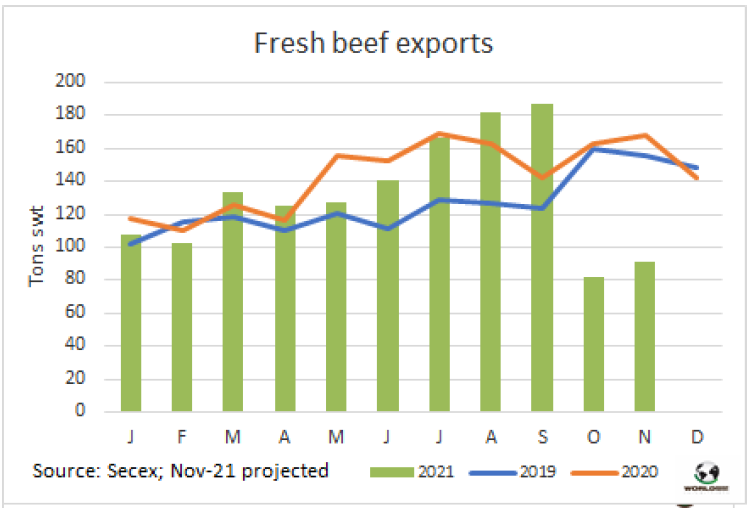 11月牛肉出口量處于低水平