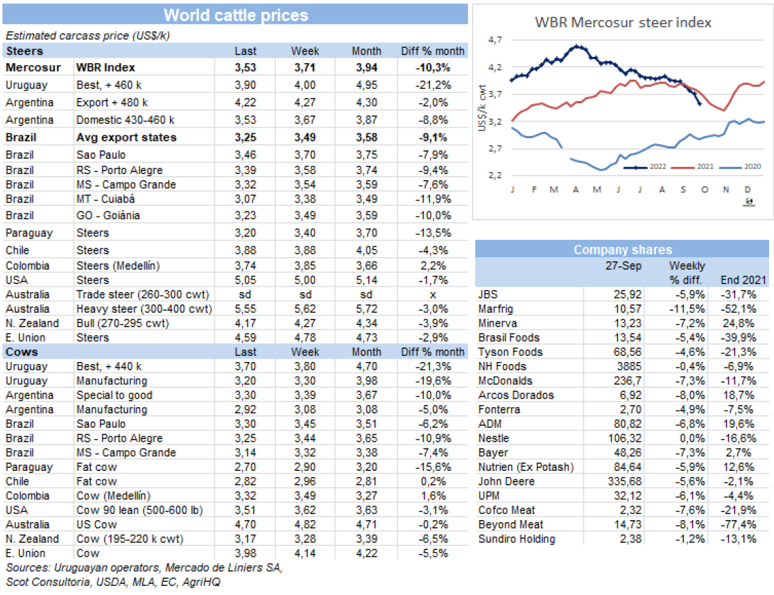 南方共同市場國家閹牛價格急劇下跌