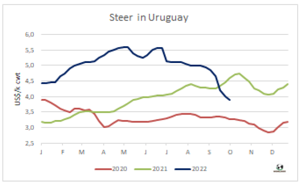 出口閹牛價格下跌了5比索,質(zhì)量較好的牛例外