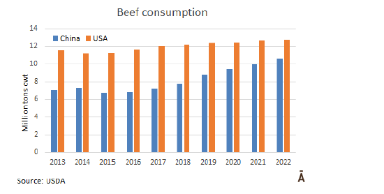 八年來(lái),中國(guó)的牛肉消費(fèi)增長(zhǎng)了60%