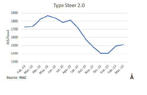 這些閹公牛的采購(gòu)價(jià)格在3月上漲了60美元,達(dá)到了1170美元,因此兩者之間的差額(INAC稱之為工業(yè)附加值)減少了38美元,達(dá)到343美元每頭。
