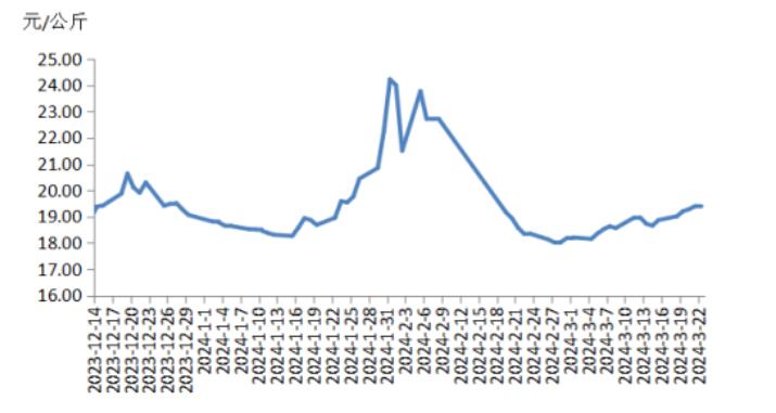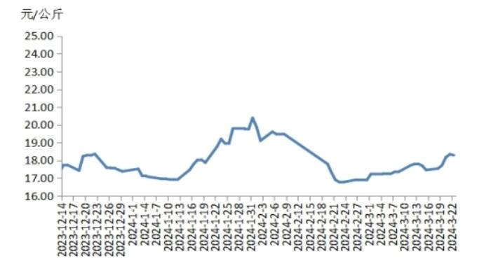 本周,四川豬肉周均價(jià)為每公斤18.96元,環(huán)比上漲1.3%,同比上漲2.2%,同比漲幅擴(kuò)大2.0個(gè)百分點(diǎn)。川內(nèi)散養(yǎng)戶(hù)出欄積極性不高,適重豬源減少;家庭消費(fèi)逐漸恢復(fù),豬肉經(jīng)銷(xiāo)商拿貨積極性提升,需求短時(shí)小幅增加。供減需增提振四川地區(qū)豬肉周均價(jià)環(huán)比小幅上漲。