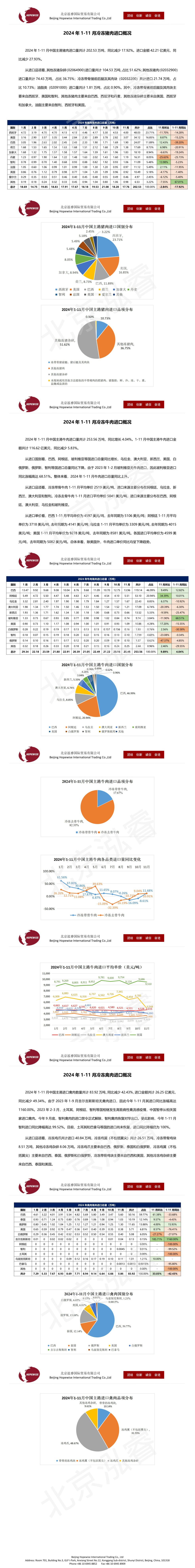 2024年1-11月冷凍豬牛禽肉海關(guān)進口數(shù)據(jù)