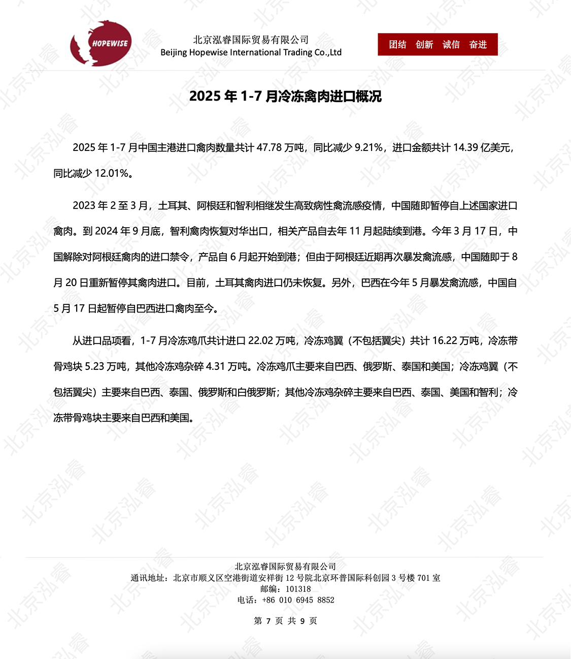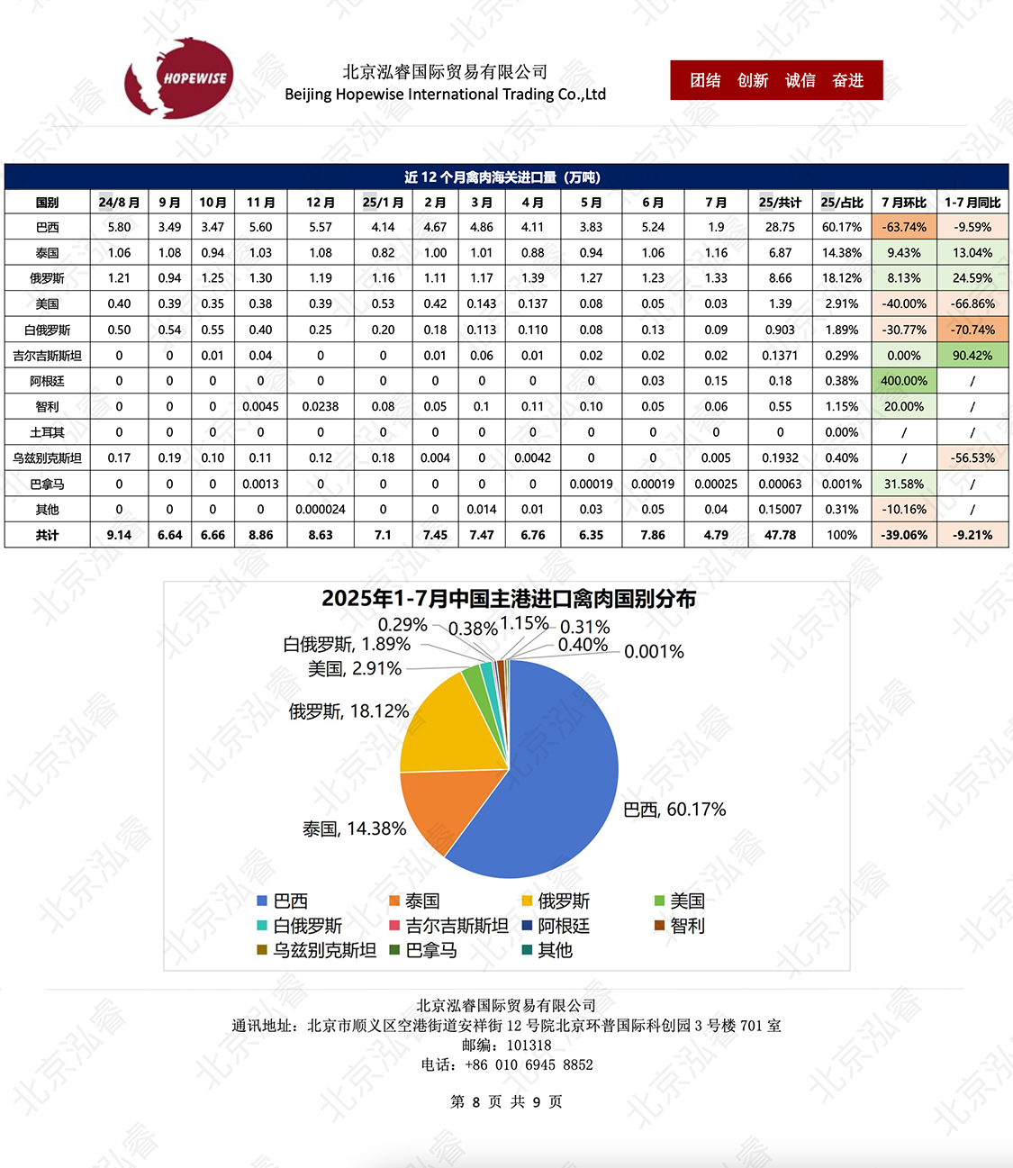 2025年1-7月冷凍豬牛禽肉海關進口數(shù)據