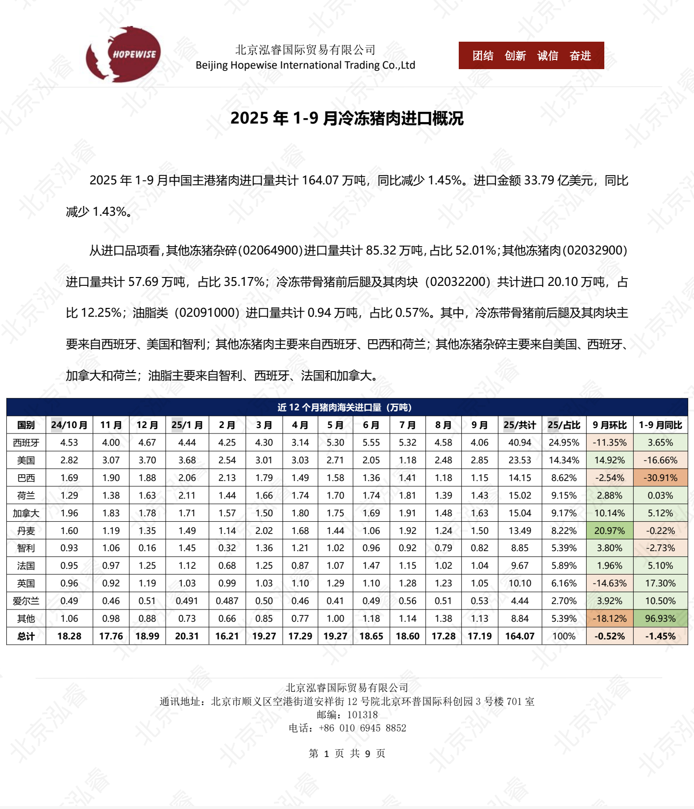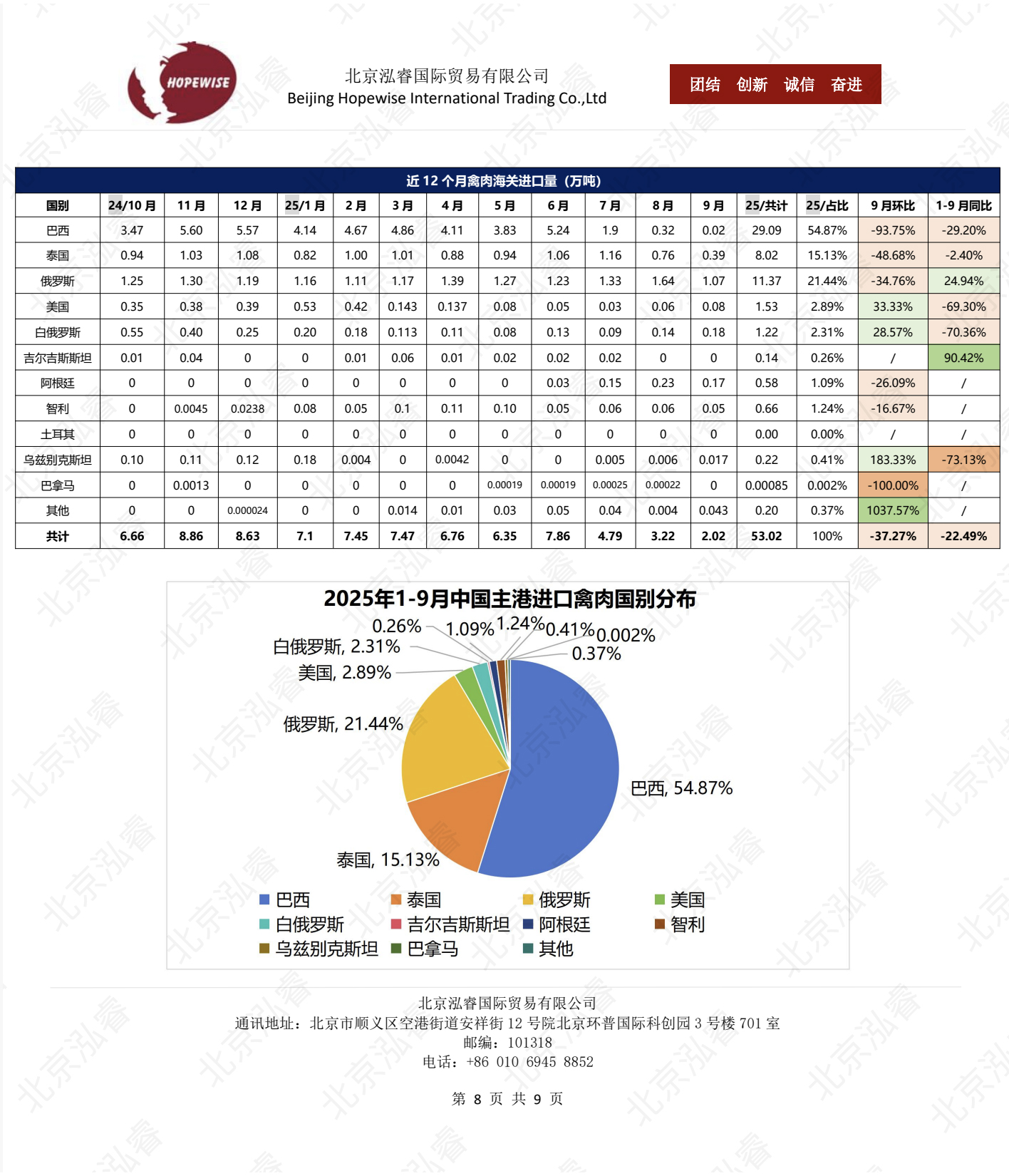 2025年1-9月冷凍豬牛禽肉海關(guān)進口數(shù)據(jù)