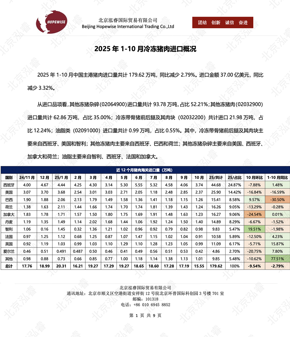 2025年1-9月冷凍豬牛禽肉海關(guān)進(jìn)口數(shù)據(jù)