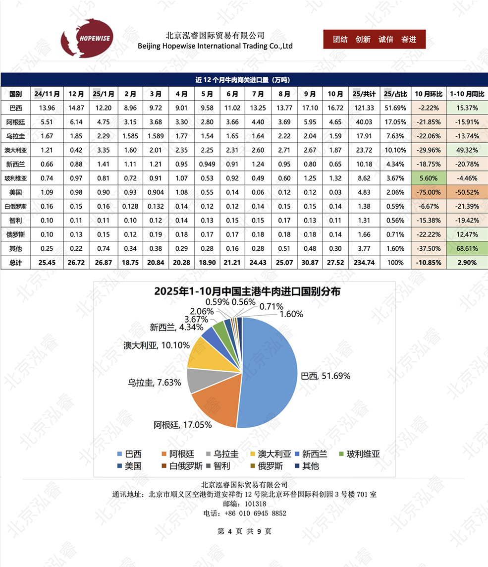 2025年1-10月冷凍豬牛禽肉海關(guān)進(jìn)口...