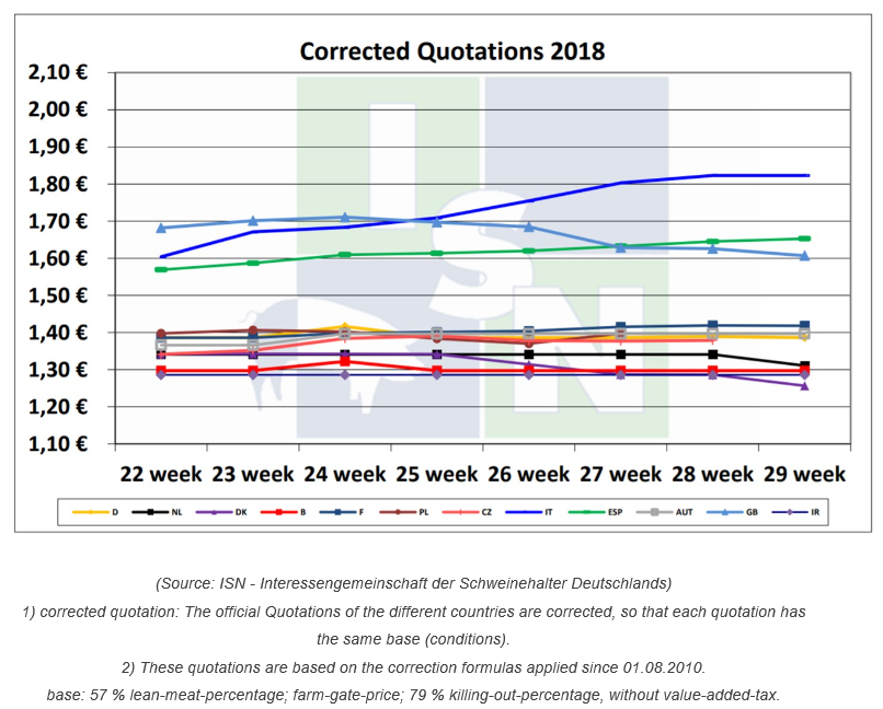 隨著大量游客蜂擁至歐洲南部國家,這些地方的夏季燒烤正如火如荼。因此,肉類需求依然維持在高位。西班牙生豬價格小幅上漲。與過去數(shù)周相比,歐洲其他國家的生豬價格變化不大,幾乎沒有變。隨著氣溫繼續(xù)變暖,待宰豬數(shù)量保持低位,屠宰量下降,胴體體重同樣減輕。奧地利上周胴體重量低于96.5公斤?;铙w市場依然在等待收購價格上漲,屠企繼續(xù)壓價。