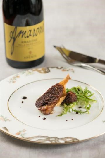 主菜是紫禁城脆燒愛爾蘭肥牛,以京味脆燒的制法將愛爾蘭肥牛的肉香激發(fā)出來,焦香脆口,搭配上海華飲提供的意大利歌朗·阿瑪諾奈紅葡萄酒。上海華飲餐飲總監(jiān)周志鵬介紹說,只有最好的葡萄才用作釀制阿瑪諾奈葡萄酒,去梗輕柔按壓,于不銹鋼桶中25°C恒溫發(fā)酵30天,后低溫發(fā)酵12天,每天泵送三次以促進汲取葡萄皮中的多酚。香氣復(fù)雜帶有紅色和黑色漿果的混合香味,如酸櫻桃和黑醋莓,并伴隨著甘草、煙草和黑胡椒的香料味道,與運用中式脆燒技法烹飪的愛爾蘭肥牛搭配,酒體的濃度與復(fù)雜相融得恰到好處。果香與肉香互為補充,解膩開胃。