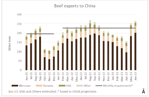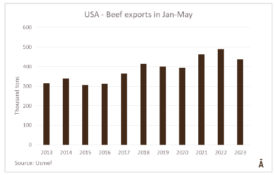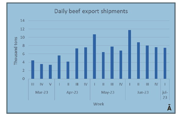 6月份對中國的牛肉出口數(shù)據(jù)顯示,出口量接近去年下半年創(chuàng)下的月度記錄,考慮到近幾個月需求的顯著疲軟,這一點令人震驚。