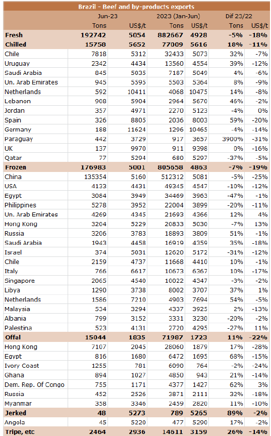一位巴西出口商補充說,在5月底至6月初期間,“有大量肉類庫存”,但他保證“7月出口量將大幅下降”。