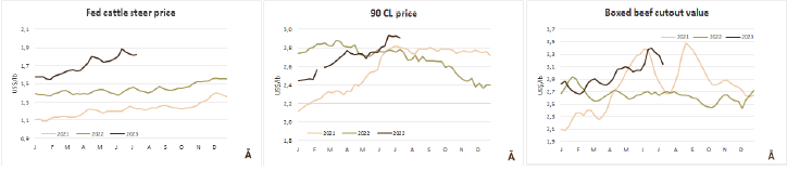 在國際市場穩(wěn)定的支持下,極低的供應和比較大的購買興趣使市場更加穩(wěn)定。此外,Marfrig-Colonia 恢復了工作,因此只剩下Marfrig-Inaler and Minerva-Canelones兩家公司沒有交易。