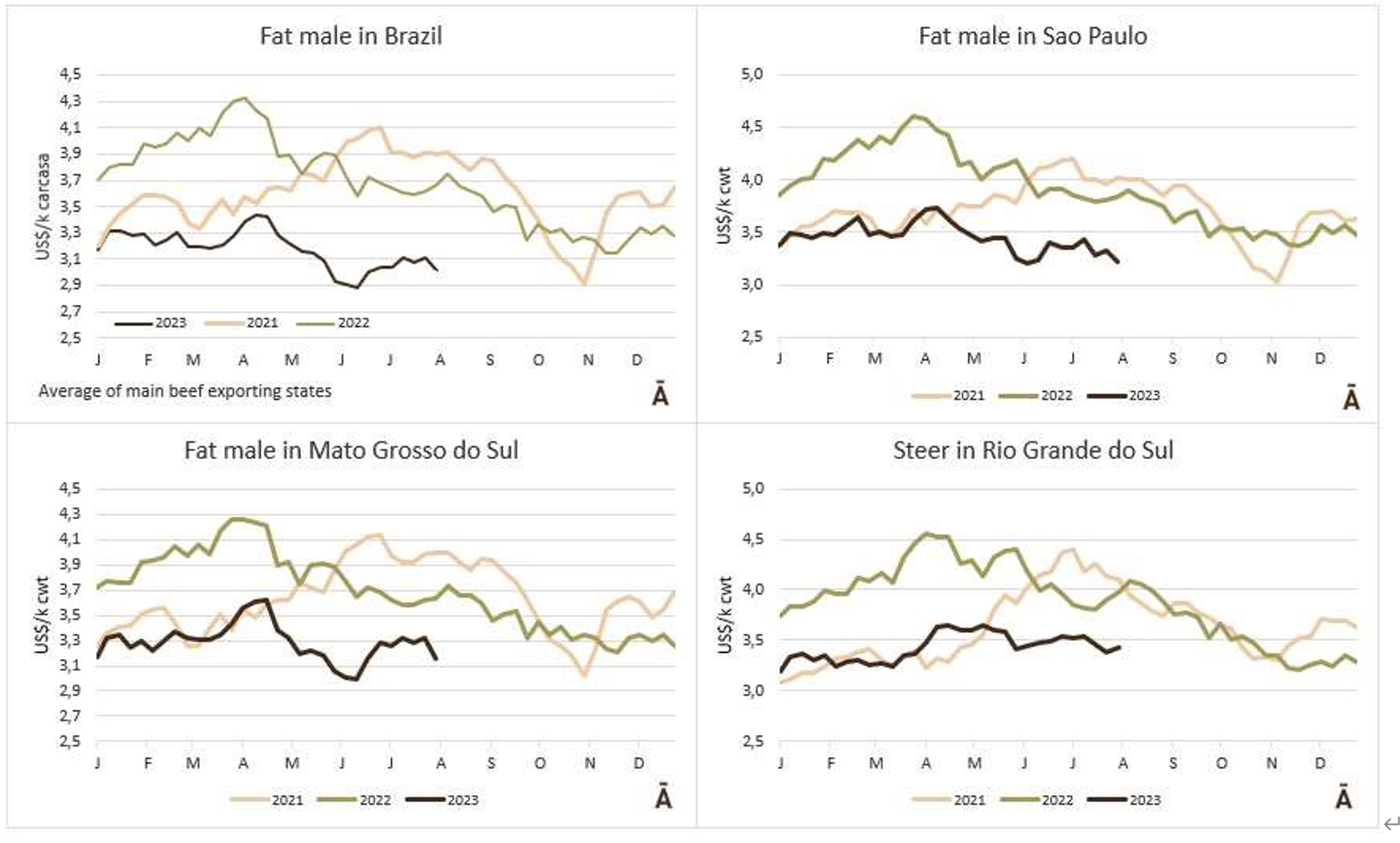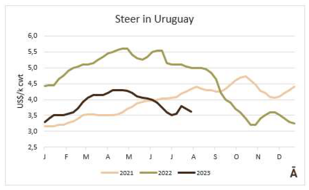 盡管一些工廠從上周開拾堅持以低的價格支付,但巴拉圭的價格基本上保持不變,普通公牛每公斤胴體重量約3.50美元,肥牛約3.10美元。