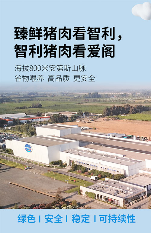 愛閣(Agrosuper)作為智利領先企業(yè)代表,始創(chuàng)于1955年,它位于智利中央山谷,該地區(qū)擁有宜人的地中海氣候和至關重要的地理屏障,使動物可以自然、健康地生長。愛閣自主培育的豬種集四大純種豬基因優(yōu)勢于一體,科學喂養(yǎng),使其帶有雪花紋理;安第斯山脈下養(yǎng)殖和生產(chǎn),純凈水源滋養(yǎng)生長,獨特的氣候和海拔造就了愛閣產(chǎn)品與眾不同的味道和品質;先進的急速冷凍技術最大程度鎖住鮮度(動物屠宰三小時內急速冷凍鎖鮮);憑借天獨厚的地理條件和先進的生產(chǎn)技術向世界提供臻鮮美味。