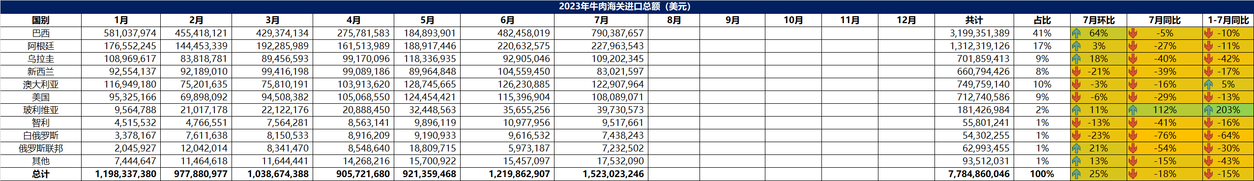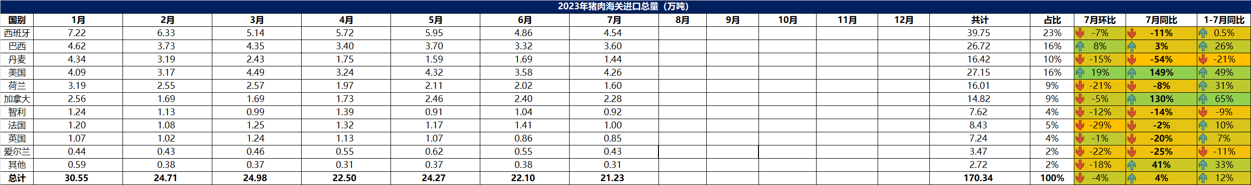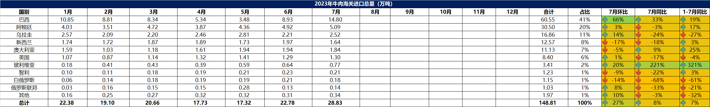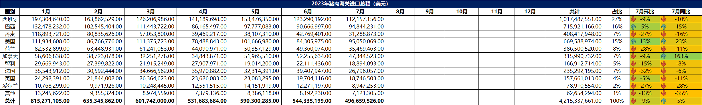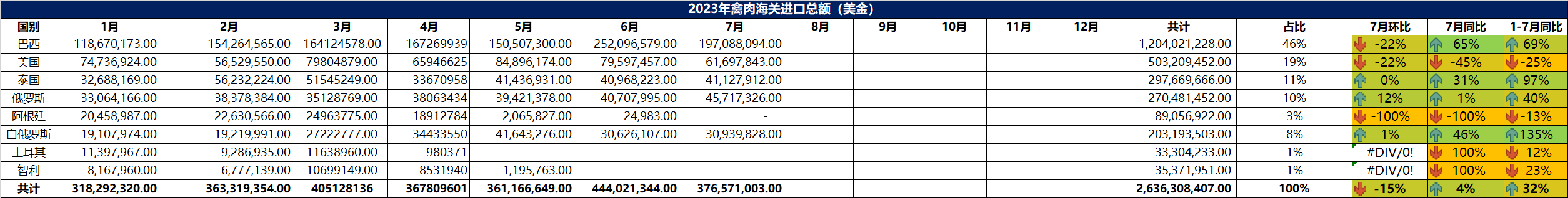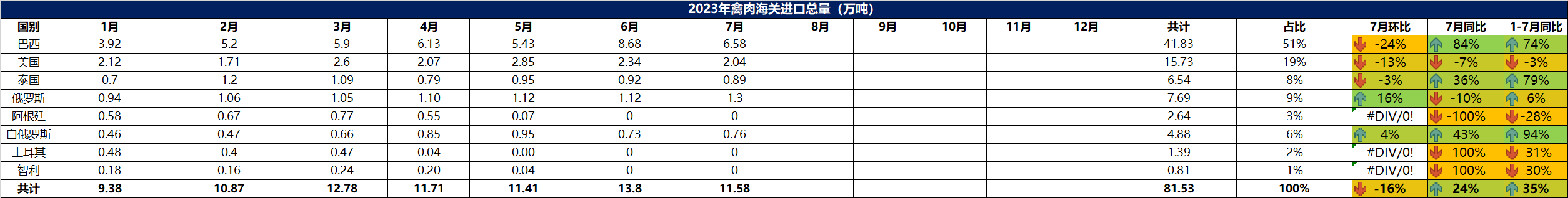 2023年7月冷凍豬牛禽肉海關(guān)進(jìn)口數(shù)據(jù)