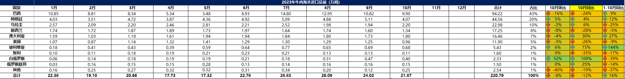 2023 年 10月冷凍牛肉進口概況