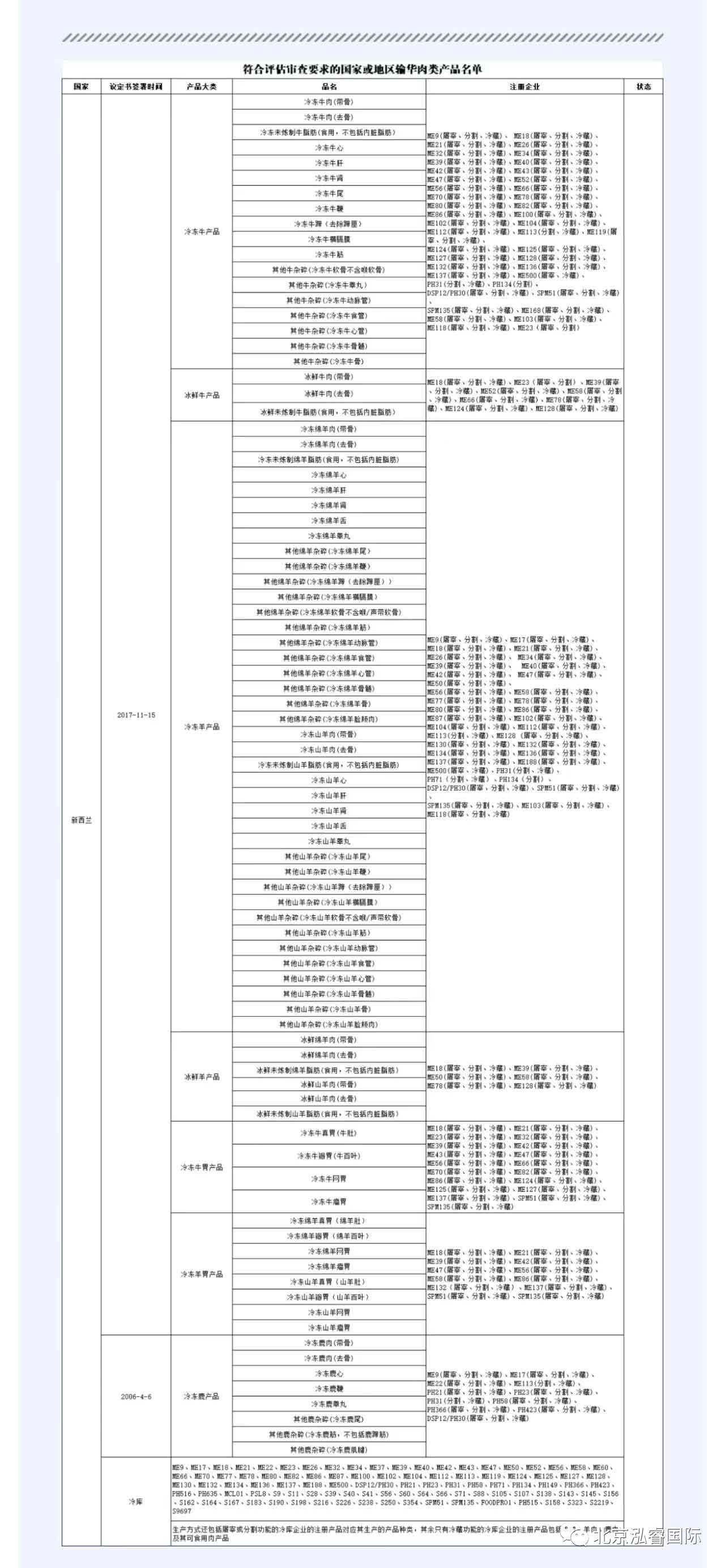 符合評估審查要求的國家或地區(qū)輸華肉類產(chǎn)品名單更新