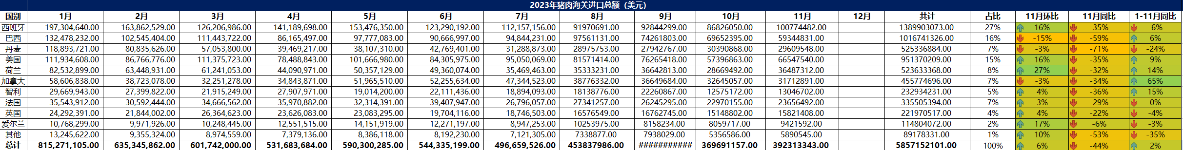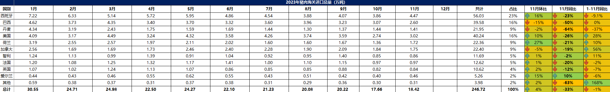 2023年11月冷凍豬肉進(jìn)口概況