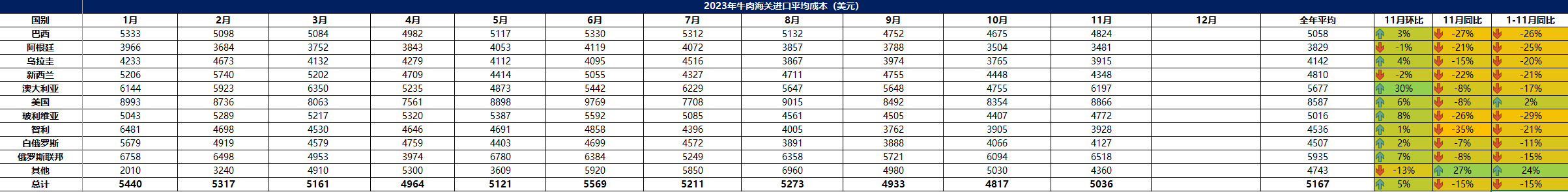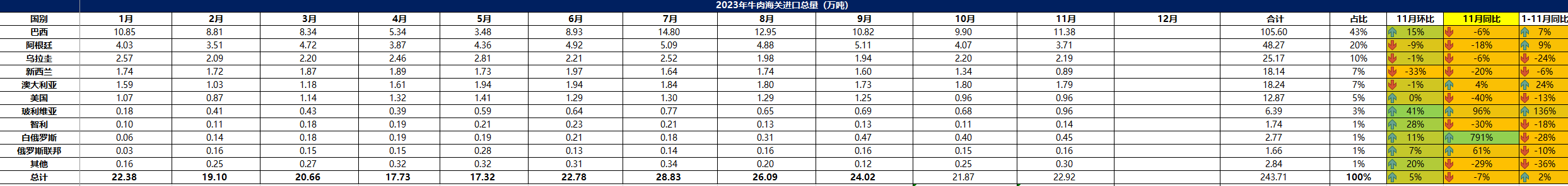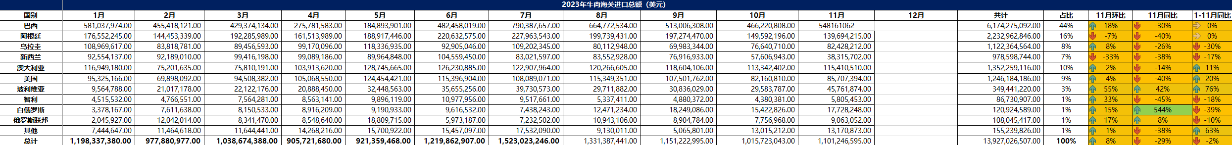 2023年11月冷凍牛肉進(jìn)口概況