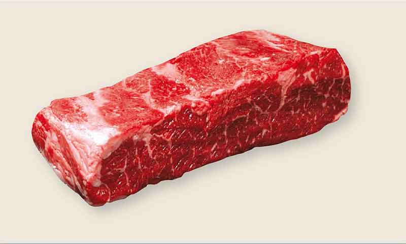牛肩胛翼板肉(Beef Chuck Flap Tail)是位于牛下肩胛襯底板肉及肩胛小排之間的精肉,是從第2根至第4根肋骨間的厚肉部位所切取而得。這塊肉呈橢圓形,外形整齊,易于切割,肉塊厚實(shí),富含大理石紋油花,肉質(zhì)細(xì)嫩多汁,非常適合燒烤,是牛上腦最好的部位之一。