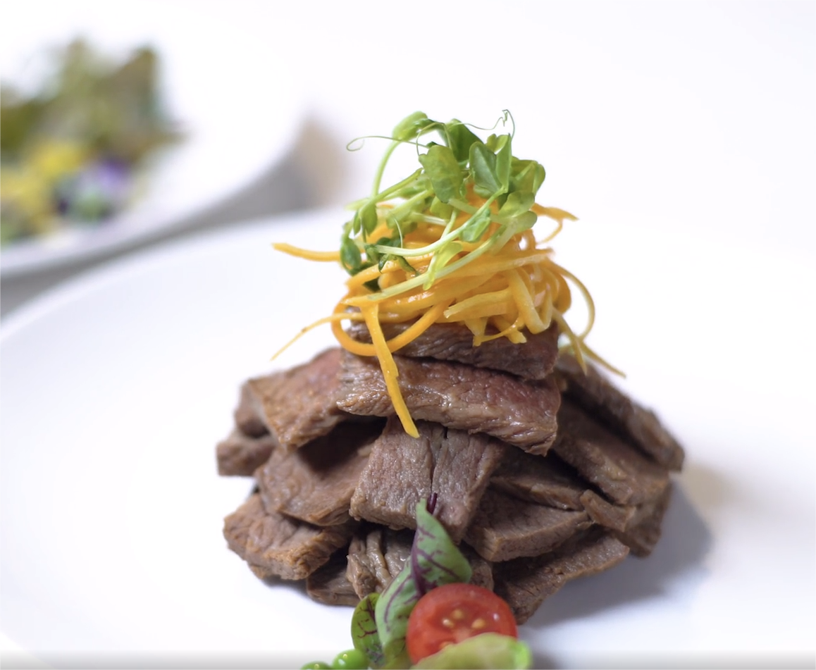 風(fēng)味濃郁的燉牛肩肉,搭配清爽的松子香料沙拉,令口味濃郁的燉牛肩肉更顯精致,風(fēng)味上也多了清新感。