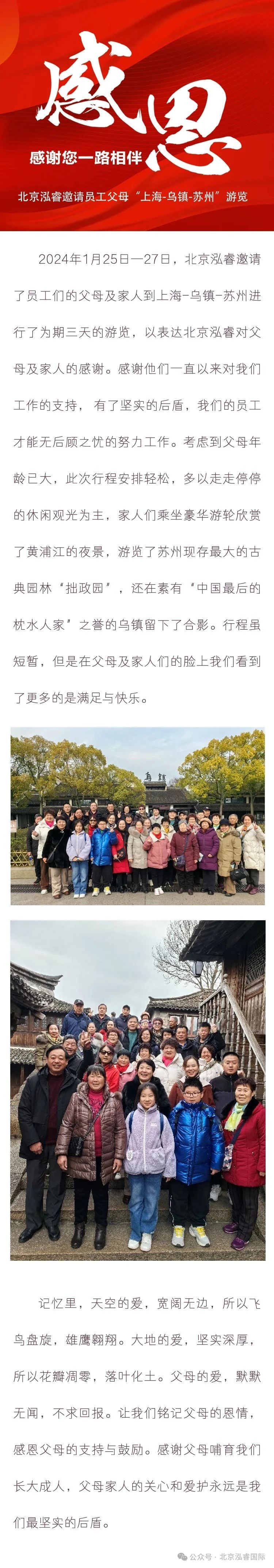 北京泓睿邀請(qǐng)員工父母上海-烏鎮(zhèn)-蘇州游覽