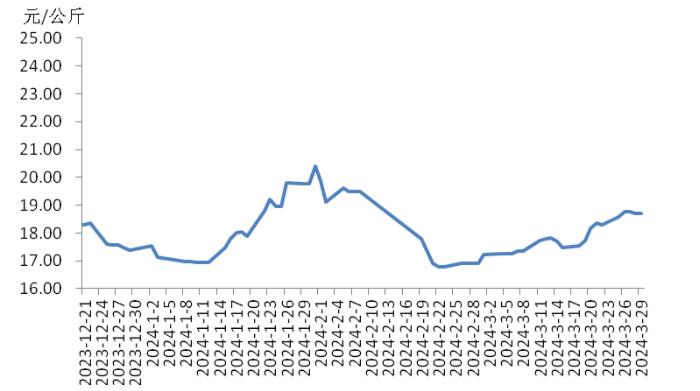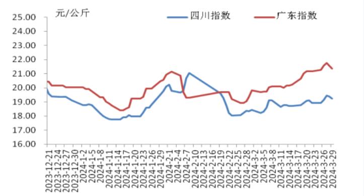 本周,四川豬肉周均價(jià)為每公斤19.24元,環(huán)比上漲1.5%,同比上漲5.9%,同比漲幅擴(kuò)大3.7個(gè)百分點(diǎn)。周前期,川內(nèi)散養(yǎng)戶出欄生豬的節(jié)奏較穩(wěn)定,但豬源外調(diào)出川的數(shù)量增多,使得川內(nèi)生豬及豬肉供應(yīng)偏緊,疊加豬肉經(jīng)銷商積極采購,推動(dòng)豬肉價(jià)格上漲。周后期,消費(fèi)市場(chǎng)對(duì)高價(jià)豬肉需求量減少,客戶訂單量減少,豬肉價(jià)格小幅回落??傮w看,本周四川地區(qū)豬肉周均價(jià)環(huán)比小幅上漲。