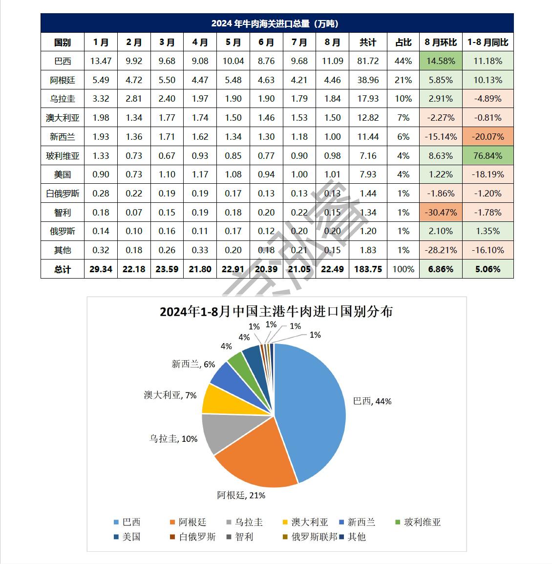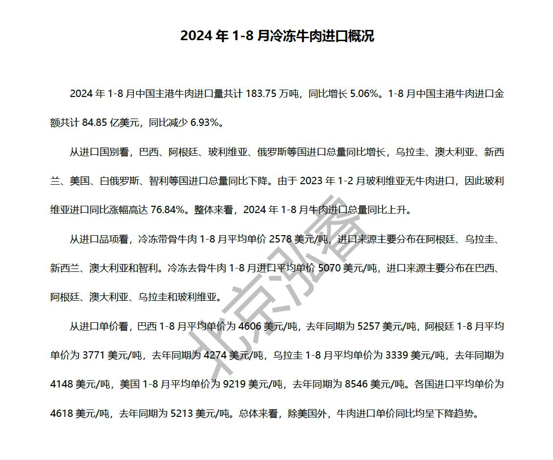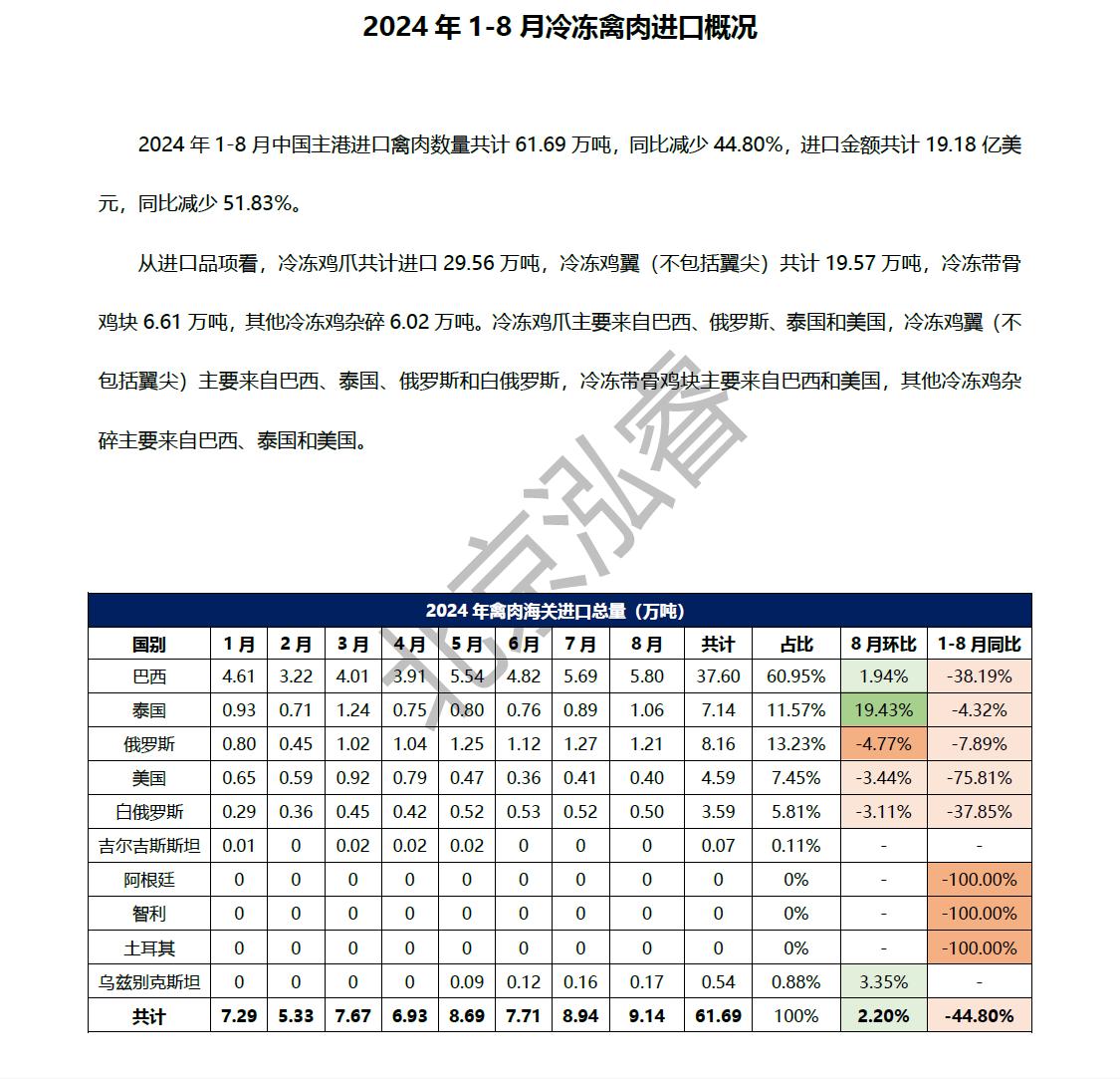 2024年1-8月冷凍豬牛禽肉海關(guān)進(jìn)口數(shù)據(jù)