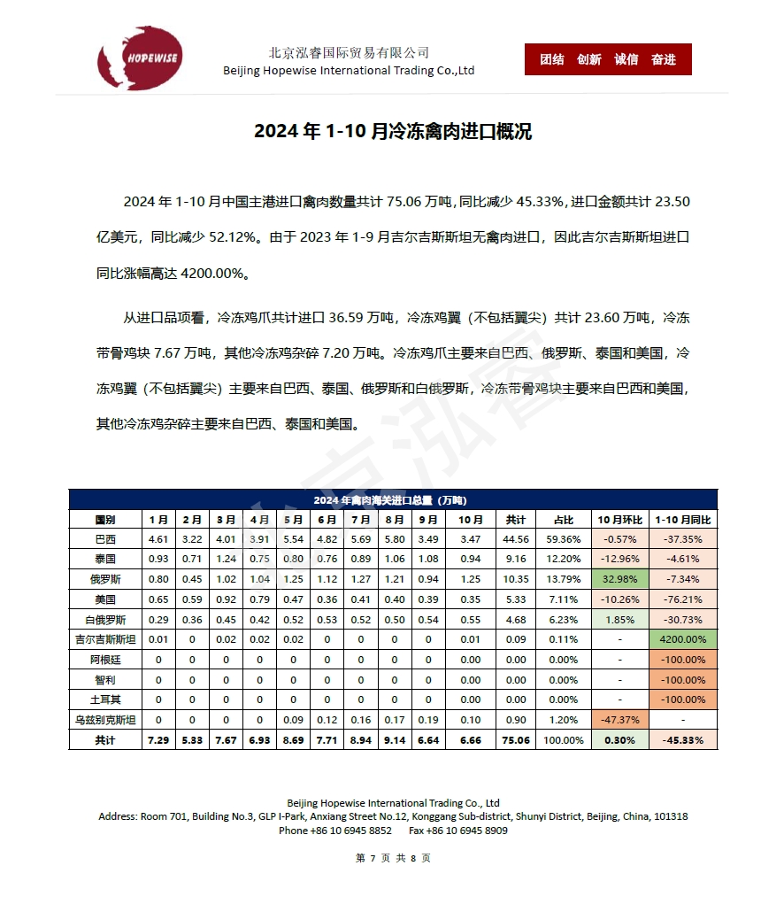 2024年1-10月冷凍豬牛禽肉海關(guān)進(jìn)口數(shù)據(jù)