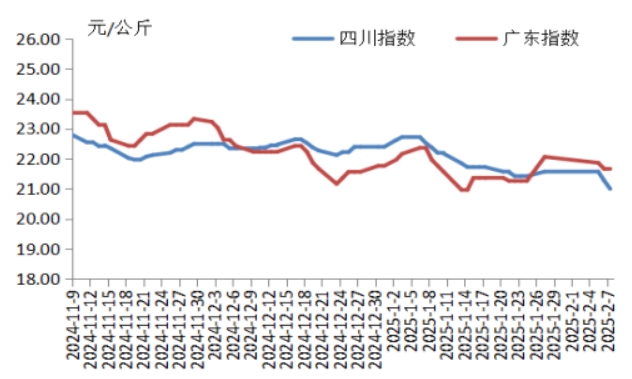 本周,廣東豬肉周均價(jià)為每公斤21.73元,環(huán)比上漲2.1%,同比上漲9.8%,較上周漲幅擴(kuò)大1.6個(gè)百分點(diǎn)。上周屠宰企業(yè)暫未開(kāi)工,豬肉供應(yīng)有限,屠宰企業(yè)有挺價(jià)情緒;同時(shí),外地返回廣東務(wù)工的人員尚未完全恢復(fù),廣東地區(qū)目前人流量相對(duì)較少,豬肉消費(fèi)暫時(shí)疲軟,使得豬肉價(jià)格較上周末小幅下跌后趨穩(wěn),仍高于上周均價(jià)??傮w看,本周廣東地區(qū)豬肉周均價(jià)環(huán)比上漲。