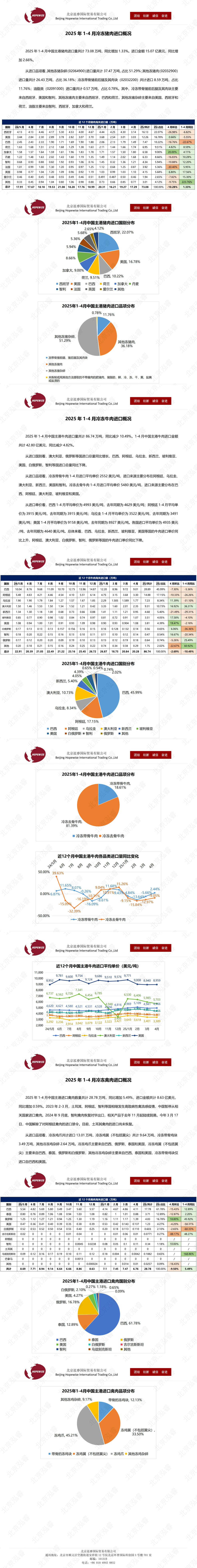 2025年1-4月冷凍豬牛禽肉海關(guān)進口數(shù)據(jù)